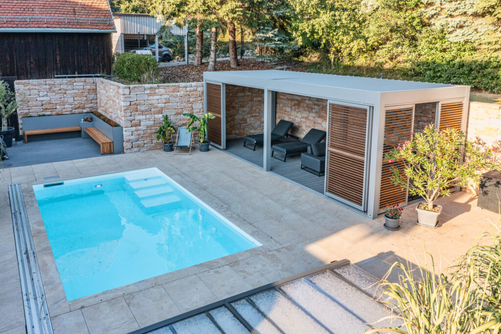 Das Ergebnis ist eine Terrassenüberdachung, die nicht nur funktional überzeugt, sondern den Außenbereich zu einer echten Wohlfühlzone macht. Die harmonische Verbindung von Aluminium und Echtholz verleiht der Anlage einen exklusiven Charakter und macht sie zu einem gestalterischen Highlight im Garten.