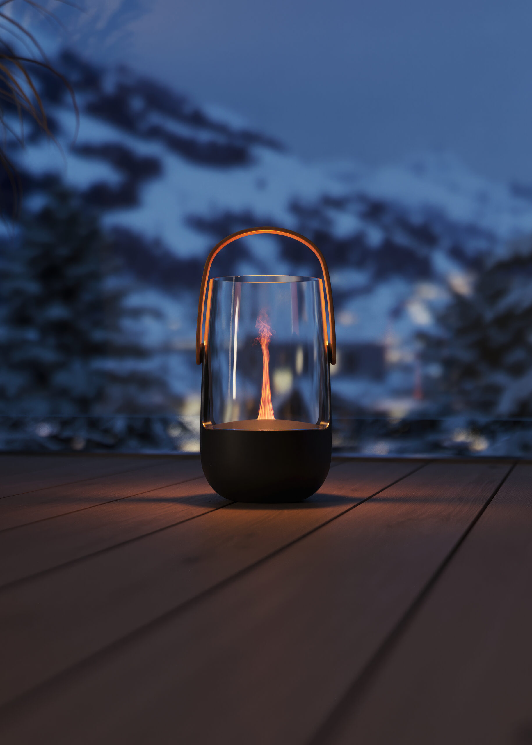 Schweizer Design trifft auf natürliche Düfte. Aroma Diffuser mit Flammen-Effekt, Laternen und ätherische Öle – für Wohnzimmer, Terrasse und Garten.